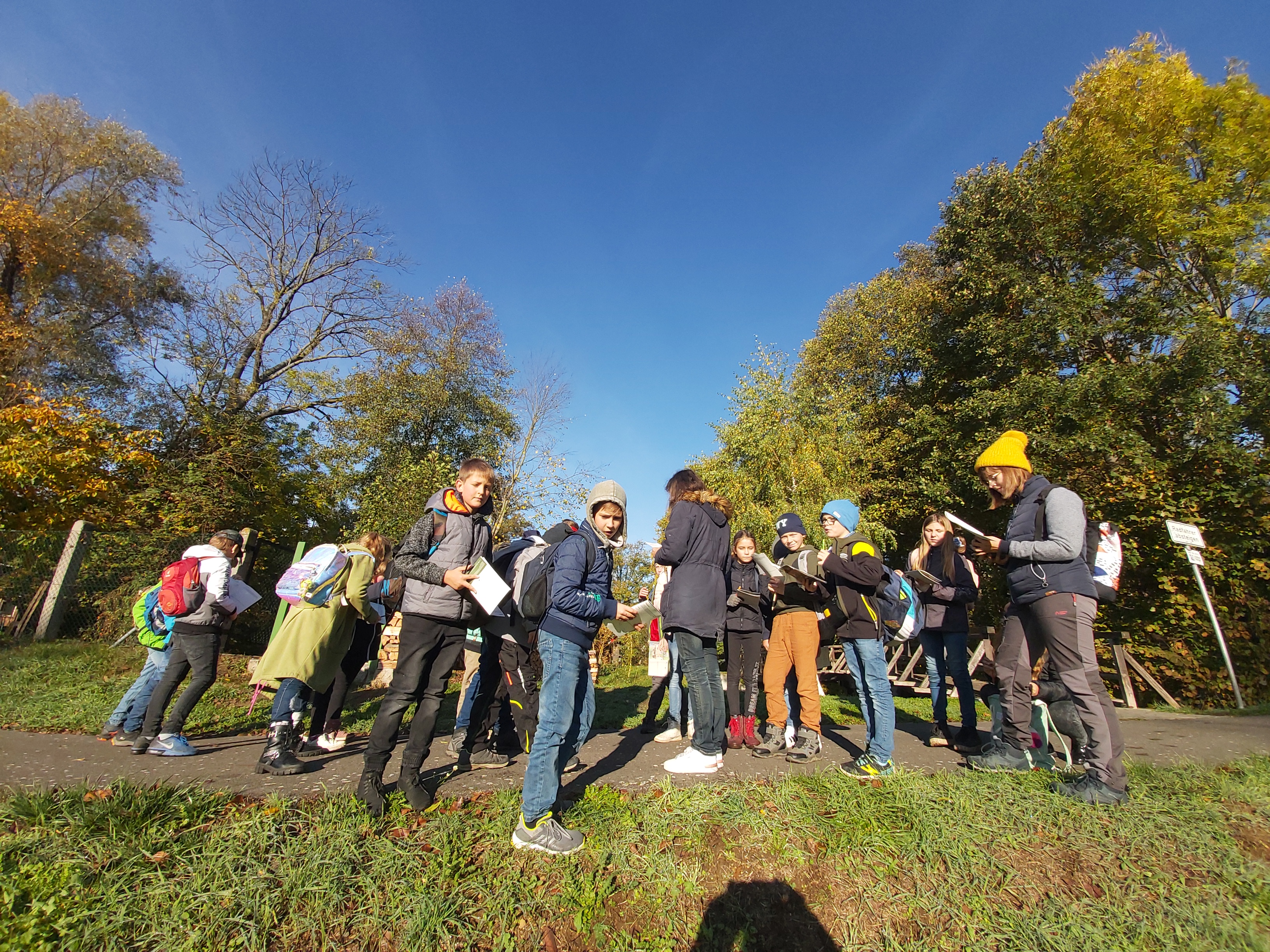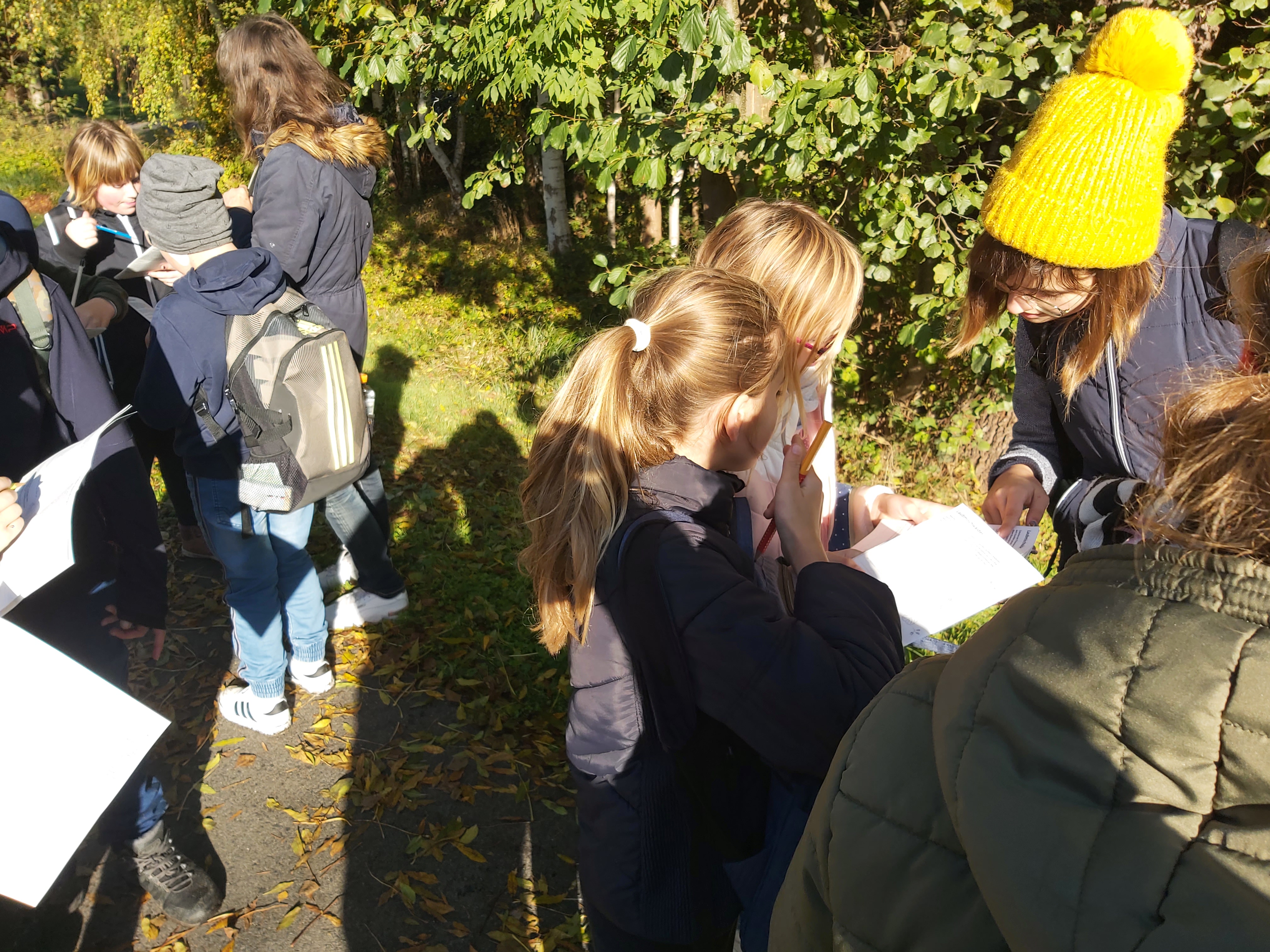 Bei strahlendem Sonnenschein führte die Klasse 4a heute eine Herbstwanderung durch. Gemeinsam mit ihrer Klassenlehrerin Frau Lacka, Frau Scheinpflug vom Biosphärenreservat Schlepzig und Anna – Sophie erhielten die Mädchen und Jungen während der Tour durch Lübben Beobachtungsaufgaben. Die Antworten dazu schrieben sie in ein kleines Heft, welches von den Mitarbeiterinnen aus Schlepzig vorbereitet wurde. Zum Schluss konnten sie sich im Labyrinth und auf dem neuen Spielplatz an der Liebesinsel austoben. Den Kindern hat dieser Vormittag gut gefallen, sie wollen im Frühjahr, wenn es wärmer wird, auch noch einmal mit Frau Scheinpflug Keschern, allerdings nicht so viel schreiben.