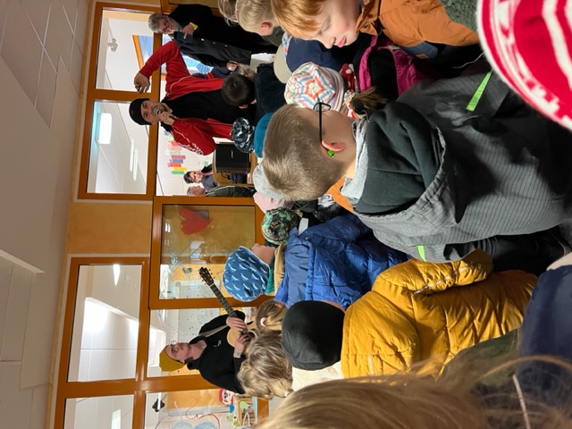Wir konnten es alle nicht glauben… Aber am Montag um 12.00 Uhr gab der Musiker ein kleines Konzert mit seinen bekannten Liedern für die Schülerinnen und Schüler der 1.-6.Klassen.