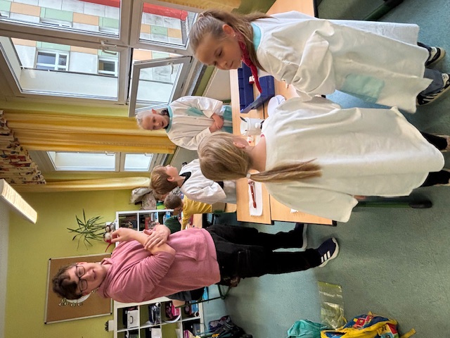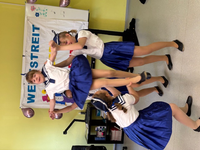 Auf dem Schulhof wartete ein abwechslungsreicher Hindernisparcours, der einiges an Geschick forderte. Mit dem Fahrrad ging es durch einen Slalom, über eine Wippe – und bei einer besonders kniffligen Station musste ein mit Wasser gefüllter Becher von einem Tisch zum anderen transportiert werden. Dabei hatte der eine oder andere ganz schön zu kämpfen, das Wasser heil ans Ziel zu bringen!
