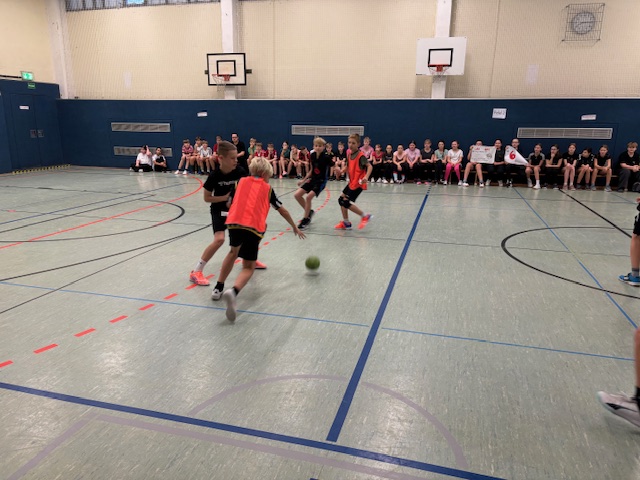 Mit viel Begeisterung und Teamgeist traten die Schülerinnen und Schüler der 5. und 6. Klassen beim traditionellen Handballturnier gegeneinander an. Die Mannschaften wurden von den Kindern selbst zusammengestellt; pro Klasse jeweils ein Mädchen- und ein Jungenteam. Unter der engagierten Leitung von Frau Brucke und Frau Gammelin wurde fair gespielt, angefeuert und mit großem Einsatz um Tore gekämpft.