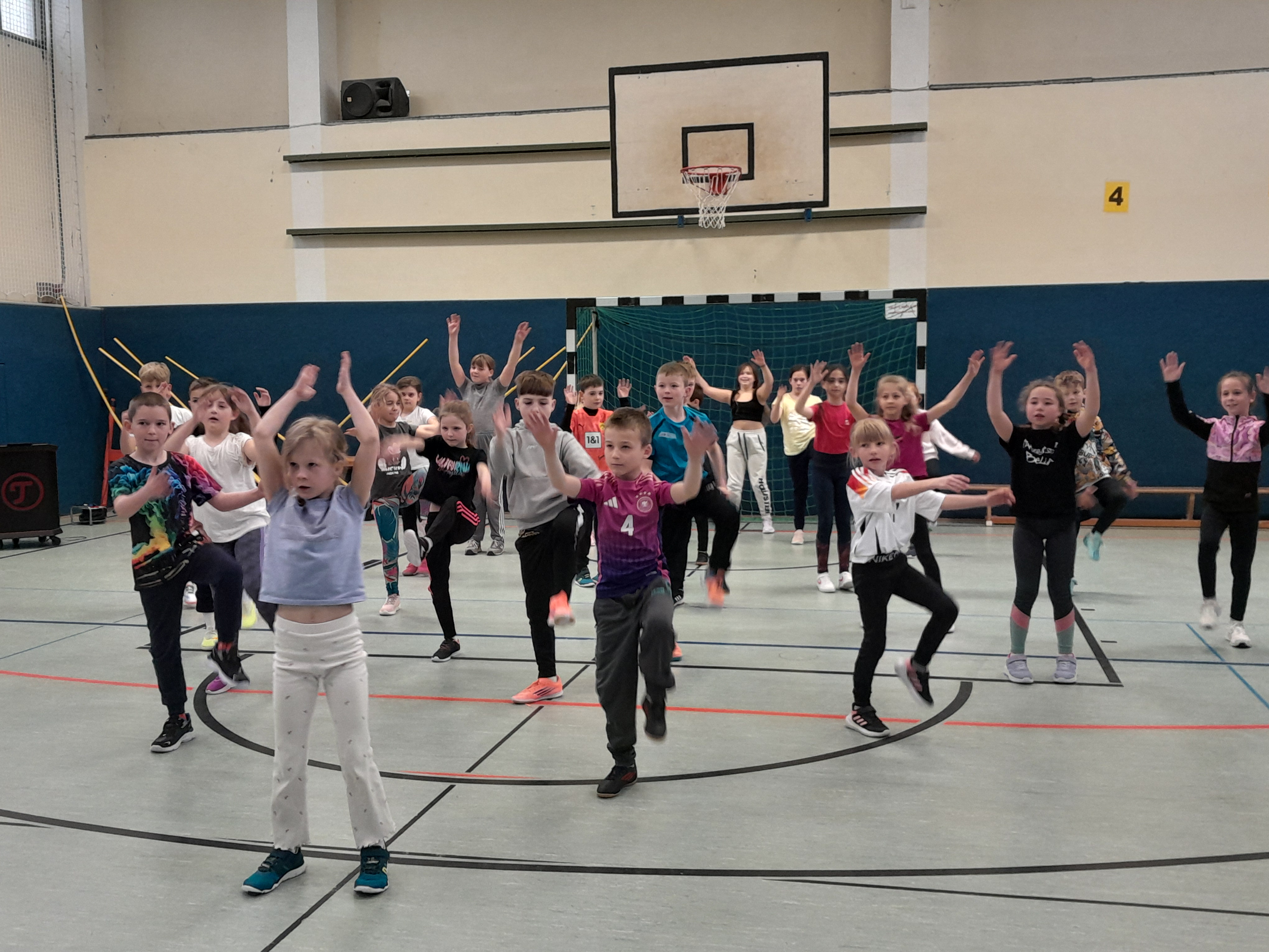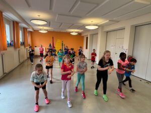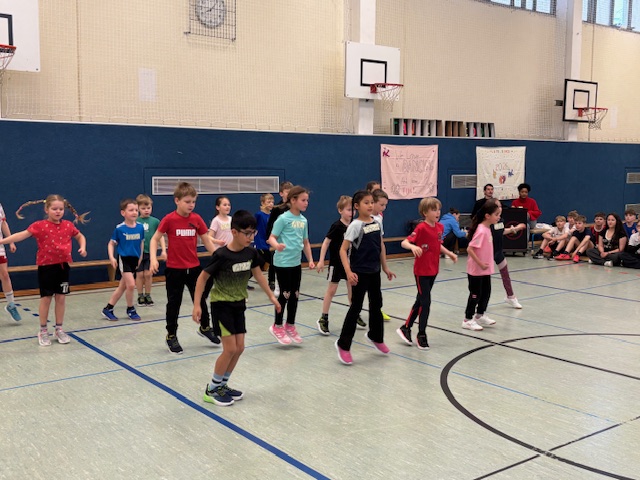 Schon früh am Morgen gingen die Klassen 1 bis 4 mit Begeisterung an den Start. Unterstützt von älteren Schülerinnen und Schülern der Klassen 5 und 6, die sie zuverlässig zu den Stationen begleiteten, meisterten die Jüngsten die Disziplinen Weitsprung, Weitwurf und Sprint mit Bravour.