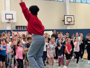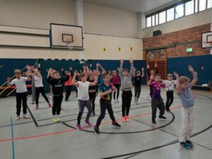 Heute wurde es im Mittelflur unserer Schule richtig weihnachtlich. Schülerinnen und Schüler der Klassen 1 bis 6 versammelten sich zu einem besonderen Event: dem gemeinsamen Singen für den Weihnachtsmann. Unter der Leitung von Frau Blumenberg stimmten die Kinder mit bekannten Weihnachtsliedern wie z.B.: „Feliz Navidad” und „Rudolf, das kleine Rentier” auf das bevorstehende Fest ein. Zu den fröhlichen Melodien wurden auch kleine Tänze einstudiert, die das Singen noch lebendiger machten. Die festliche Stimmung war sofort spürbar. Die Kinder sangen mit Begeisterung, und die Lieder hallten durch den gesamten Flur.