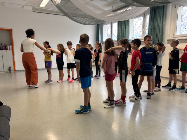 Die Klasse 4b nahm an einem Programm zur Gewaltprävention teil. Ziel war es, ein Bewusstsein für verschiedene Formen von Gewalt zu schaffen – sowohl körperlich als auch seelisch. Die Kinder lernten, wie man Konflikte erkennt und frühzeitig deeskaliert, wie wichtig es ist, sich Hilfe zu holen, und wie sie selbstbewusst und gewaltfrei handeln können.