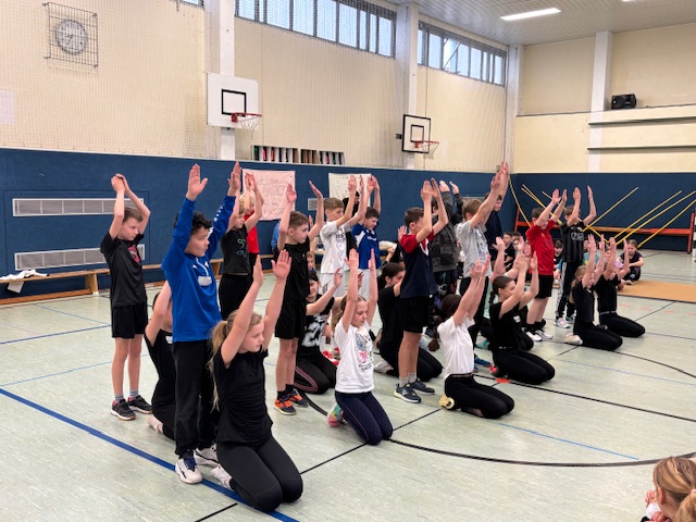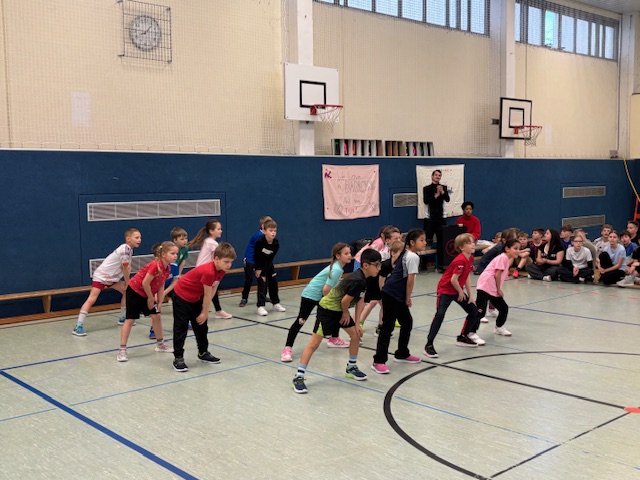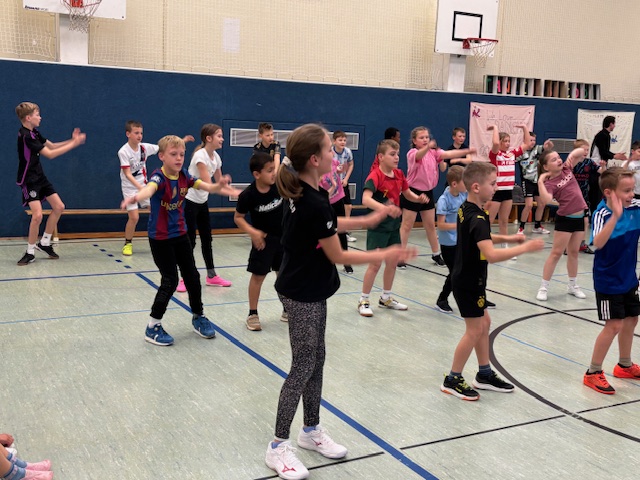 Mit viel Begeisterung und Teamgeist traten die Schülerinnen und Schüler der 5. und 6. Klassen beim traditionellen Handballturnier gegeneinander an. Die Mannschaften wurden von den Kindern selbst zusammengestellt; pro Klasse jeweils ein Mädchen- und ein Jungenteam. Unter der engagierten Leitung von Frau Brucke und Frau Gammelin wurde fair gespielt, angefeuert und mit großem Einsatz um Tore gekämpft.